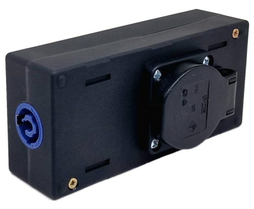 A RigPortL1S2 a truss-ra tervezett áramelosztó, eredeti Neutrik powerCON és PCE csatlakozókkal.